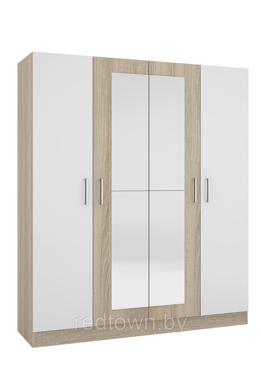 Вместительный четырехдверный шкаф Уют позволит собрать в себя все ваши вещи, максимально организовав пространство в помещении. Шкаф выполнен в контрастных цветах теплых оттенков, сочетание которых выглядит очень эффектно, стильно и утонченно. Дополняют фасад шкафа большие зеркала, расположенные на двух центральных створках. Внутри шкаф разделен на две основные секции: со штангой и с полками. Широкие полки способны вместить множество белья и одежды, а отделение со штангой для одежды является неотъемлемой частью любого платяного шкафа, ведь это практично и удобно