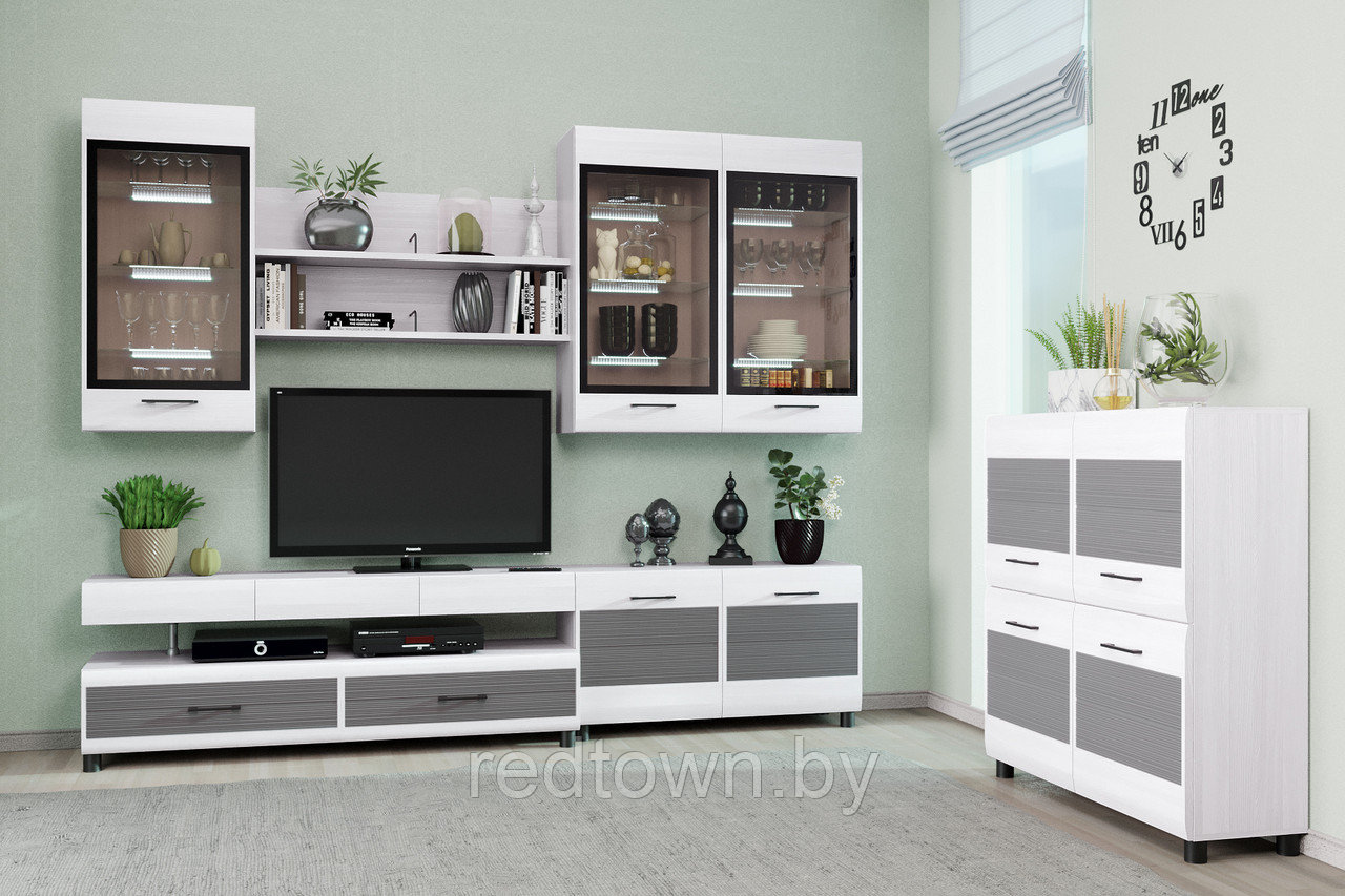 Корпусная мебель для гостиной "Камелия" - это модульная мебель. Фасады с комбинированными вставками имитируют специальную технологию "браширования".